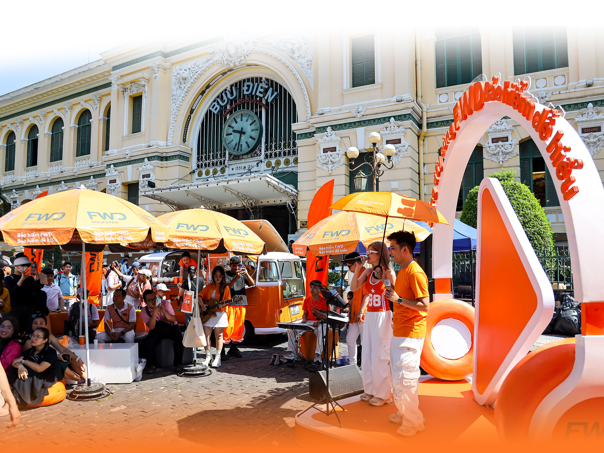FWD Box Sống đầy được tổ chức tại Bưu điện TP Hồ Chí Minh, một địa điểm mang tính biểu trưng của thành phố, dễ dàng thu hút sự quan tâm của người qua đường.
