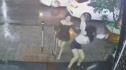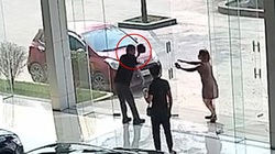 Hớt hải cầm đồ ra cho khách, người bảo vệ không chú ý đập mặt vào cửa kính cường lực và ngã bật ngửa xuống nền nhà.