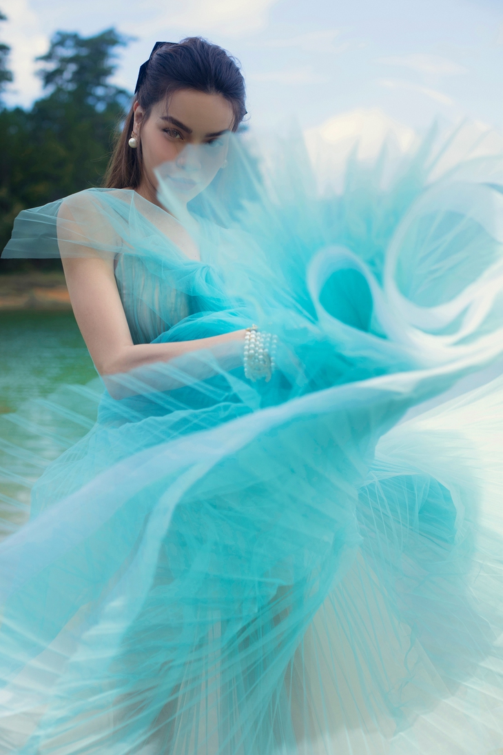 Tất cả hình ảnh đều được ghi lại tại Đà Lạt đầy thơ mộng qua ống kính của nhiếp ảnh gia Tang Tang, trang phục bay bổng của nhà thiết kế Nguyễn Công Trí, tạo hình lãng mạn bởi stylist Kye Nguyễn cùng ý tưởng từ ekip T Production..
