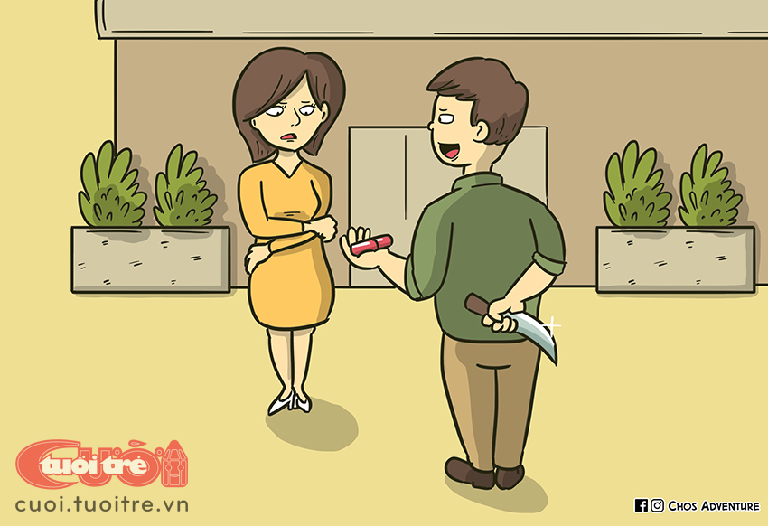 Hà tưởng người yêu sẽ xúc động chọn son môi để nối lại tình xưa với mình, không ngờ chị T thẳng thừng từ chối "tình cho đi không lấy lại bao giờ". Thấy người yêu từ chối món quà mà bao cô gái khác đều thích, Hà bèn rút dao đâm xối xả vào người yêu. Ngỡ người yêu đã chết, Hà dùng dao tự tử. Cả hai được đưa tới bệnh viện may mắn thoát chết. Kết quả chị T bị thương tật 12%.