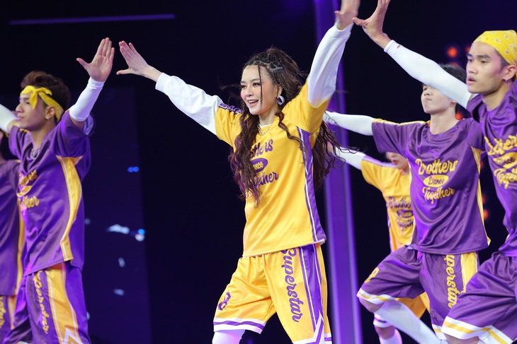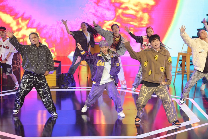 Bên cạnh Liz Kim Cương, Hậu Hoàng cũng có phần trình diễn gây bất ngờ với người xem. Rũ bỏ hình tượng một cô gái dễ thương, nhí nhảnh vốn quen thuộc, nữ YouTuber biến hình thành "chị đại" hiphop với phong cách cực cool ngầu.