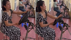 Nghe tiếng xe máy bố đi làm về, bé gái vội vàng chạy đi lấy chổi quét nhà và chăm chỉ một cách lạ thường.