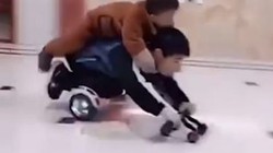 Bé gái đứng trên xe cân bằng quét nhà siêu đỉnh