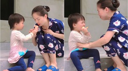 Đang đứng chơi ở phòng khách, bé gái nghe tiếng sấm liền vội chạy tới ôm chặt bà khiến nhiều người xem thích thú.