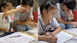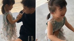 Liên tục bị búng lỗ tai, bé gái nổi quạu và mếu máo khóc khiến những thành viên khác trong gia đình phì cười.
