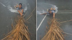 Bé trai 'chịu đấm ăn xôi' khi chơi trò kéo mo cau