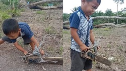 Bé trai chu miệng xin anh trai miếng kem