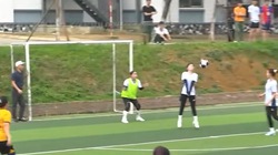 Bé trai đá văng giày đánh lừa thủ môn khi sút penalty