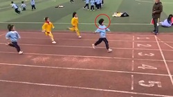 Chạy đua không lại, bé trai giở trò chơi xấu, đạp ngã đối thủ để mình chạy về đích trước.