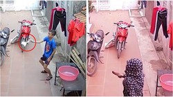 Bé trai mếu máo vì mắc kẹt trong ghế đẩu