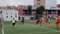 Sau khi dùng đầu đỡ cú sút penalty của đối phương, bé trai bị sang chấn tâm lý và nằm gục ngã xuống sân.