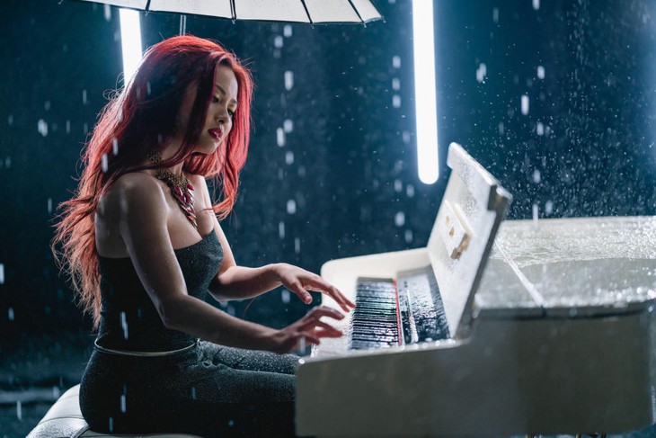 BEE Uyên Phương biểu diễn trong trong không gian ấm cúng của Premier Sound Stage cùng dàn nhạc để giới thiệu hai MV mới ra mắt"Quyết định quay MV ngoại cảnh trong rừng với piano không phải là điều đơn giản nhưng cả ê-kíp đã rất chuyên nghiệp và quyết tâm để có được những thước phim đẹp nhất" - BEE Uyên Phương cho biết.