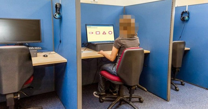 Izmir Senaj, đang làm bài thi lý thuyết lái xe cho người khác - (Ảnh: GOV.UK)
