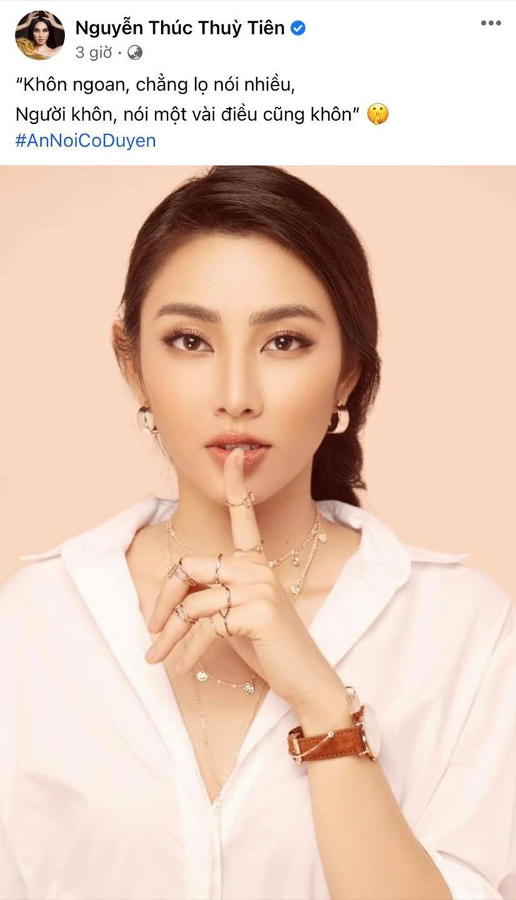 Ngay sau đó hashtag #AnNoiCoDuyen được chính các hoa hậu, á hậu lan toả rộng khắp. Điều đáng nói hơn, thay vì dùng văn nói để diễn đạt lại suy nghĩ của mình thì các nàng hậu lại cùng nhau mượn những lời thơ, ca dao tục ngữ... đã ăn sâu vào tiềm thức người Việt.
