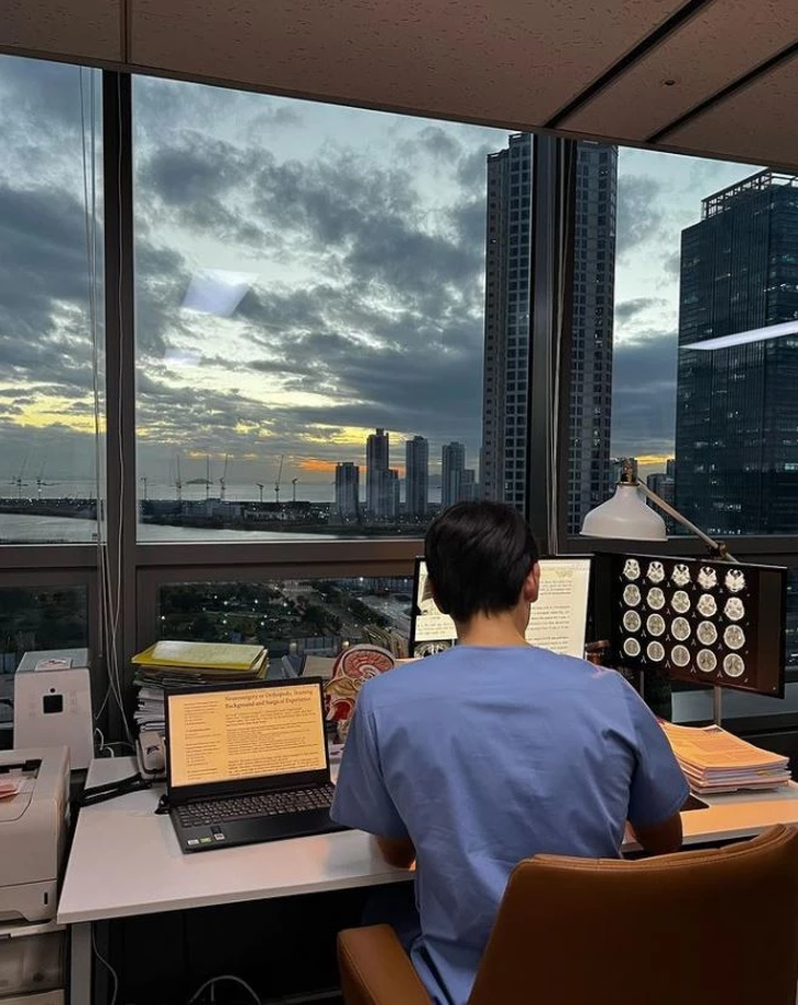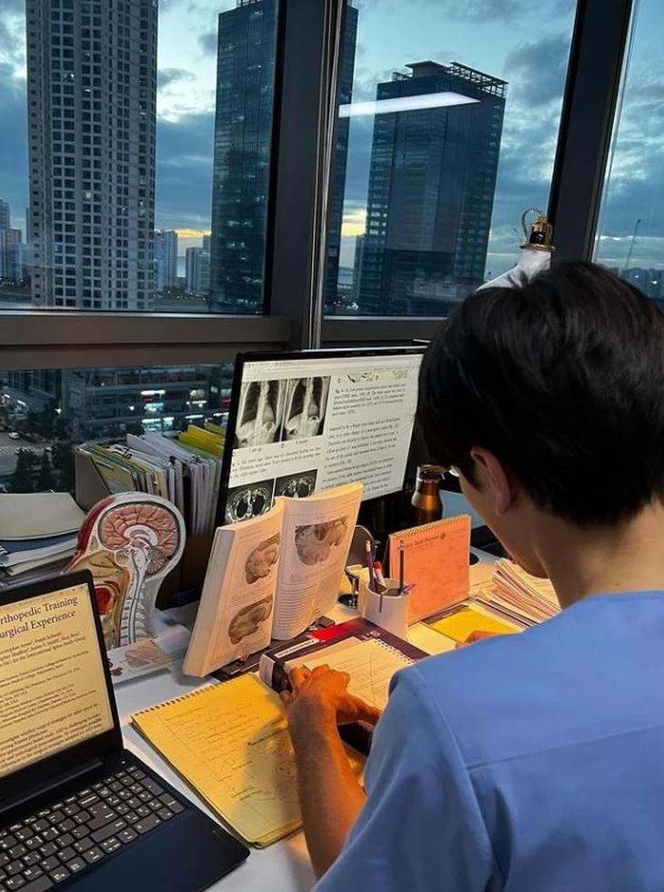 Hình ảnh mới được cho là tạo hình của Bi Rain trong vai bác sĩ.Trong bức ảnh được Rain đăng tải, ông xã Kim Tae Hee ngồi ngay ngắn trước bàn làm việc trong trang phục bác sĩ phẫu thuật và có vẻ anh đang chăm chỉ nghiên cứu tài liệu y khoa. Rain đăng ảnh kèm dòng trạng thái gây tò mò: “Học tập chăm chỉ".