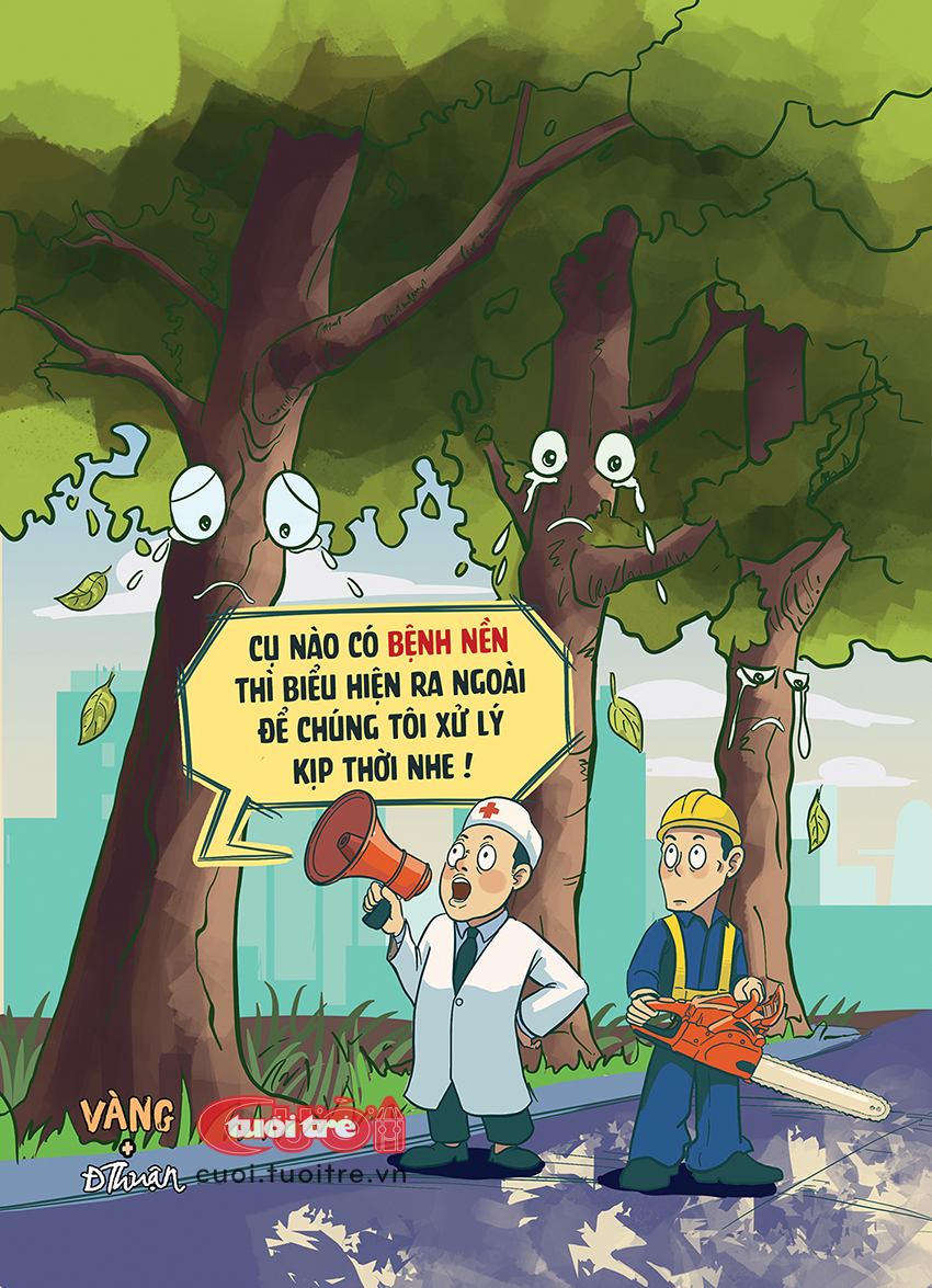 Bìa 4 Tuổi Trẻ Cười số 1-10: Các cụ cây xanh đô thị run lập cập