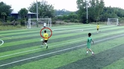 Đối diện khung thành trống, chàng trai trổ tài kỹ thuật lốp bóng nhưng không ghi được bàn.