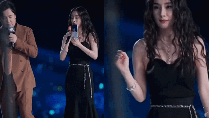 Dương Mịch và Thẩm Đằng tham gia 'Nghìn lẻ một đêm'Bên cạnh nhan sắc trẻ trung của “bà mẹ một con" thì biểu cảm của Dương Mịch khi bị đàn anh Thẩm Đằng "bỏ rơi" trong lúc đang chuẩn bị bước từ sân khấu xuống bậc thang hiện đang sốt xình xịch cũng như khiến netinzen bấn loạn.