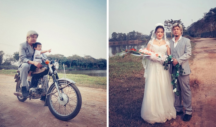 Trong buổi chụp, tuy các con có phần hiếu động nhưng rất hợp tác và hào hứng, thậm chí còn thích thú hỏi "Hôm nay bố mẹ cưới lại à?".
