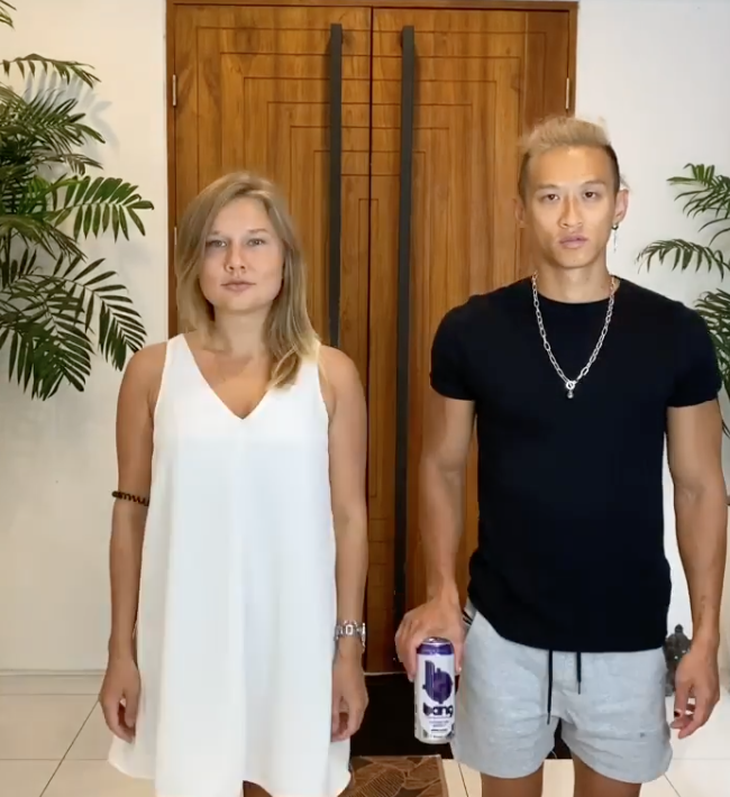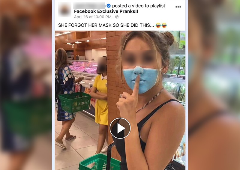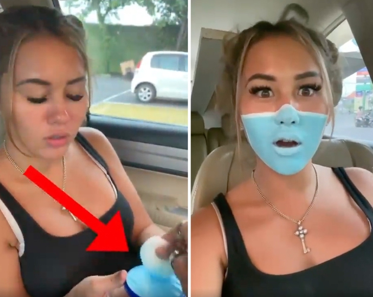 Bộ đôi vào siêu thị với khẩu trang vẽ bằng sơn hứng 'gạch đá'