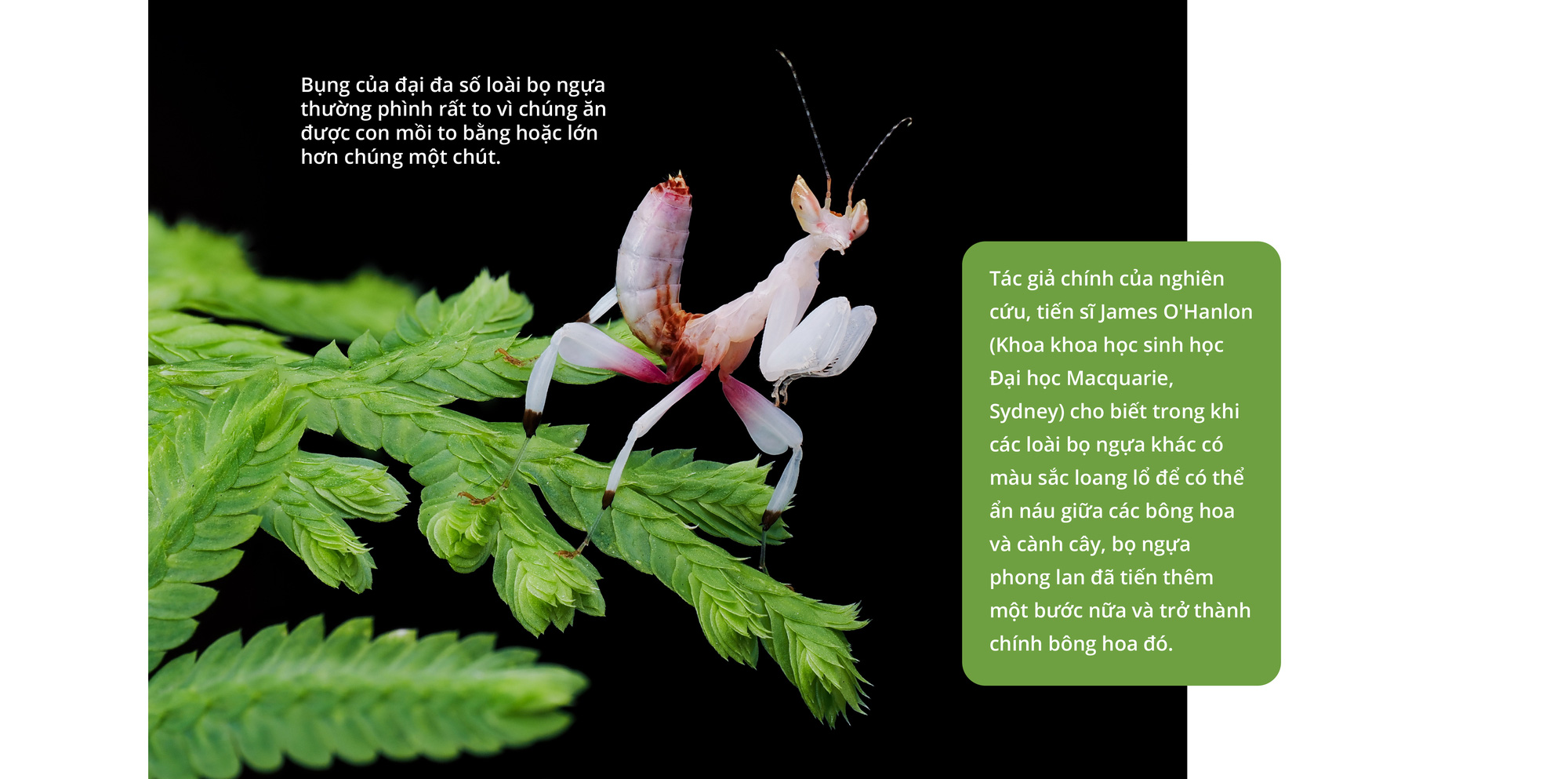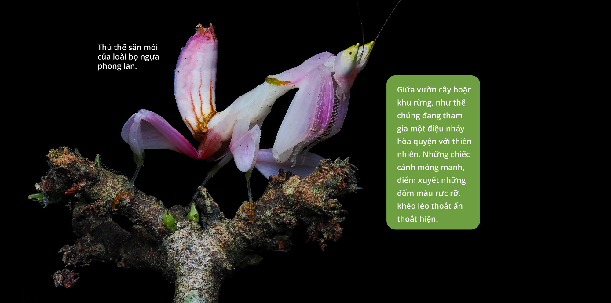 Nhưng 'hoa lan đỏ' trong câu chuyện của Hingsley không phải là một bông hoa mà là một con bọ ngựa (Hymenopus coronatus) nổi tiếng vì khó thấy và có vẻ ngoài giống hệt một bông phong lan yêu kiều.