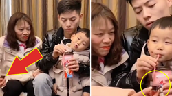 Bố trẻ cao tay cầm lon nước ngọt lừa con uống thuốc ngon lành