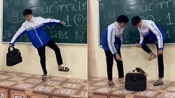 Sau khi đá bay rổ bát, bé gái ngồi trên bậc tam cấp lo sợ mẹ về mắng, còn bố và em trai đứng vỗ tay tươi cười.