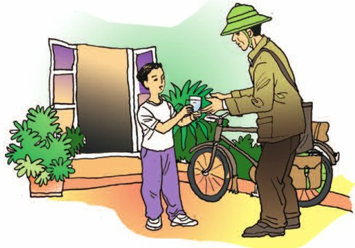 Bác đưa thư trao cho Minh một bức thư. Đúng là thư của bố rồi. Minh mừng quýnh. Minh muốn chạy thật nhanh vào nhà khoe với mẹ. Nhưng em chợt thấy bác đưa thư mồ hôi nhễ nhại.