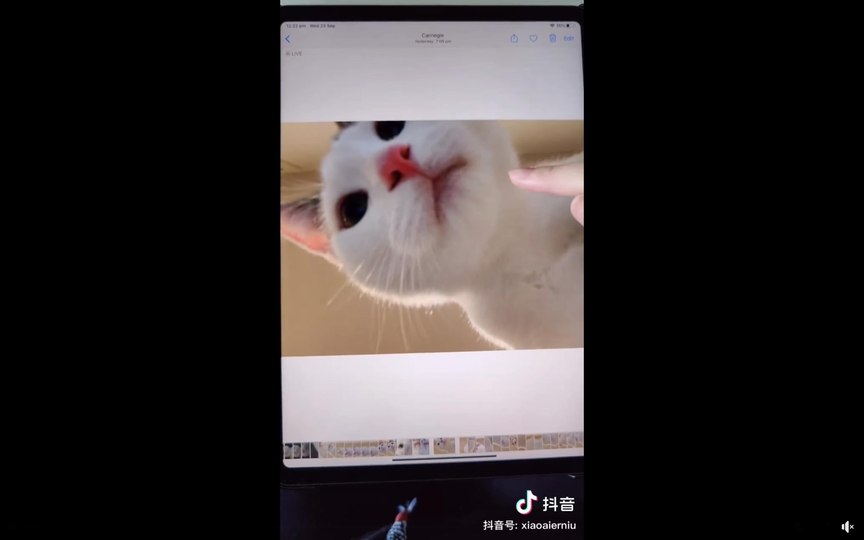 Gần đây, một đoạn video trên TikTok ghi lại hình ảnh một chú mèo tự sướng bằng ipad của sen, đang gây chú ý và được cư dân mạng chuyền tay nhau một cách chóng mặt. Trong đoạn clip ghi lại vụ việc khi sen phát hiện có một nhúm lông trắng vương trên ipad của mình, sen đã tức tốc mở ipad ra kiểm tra, thì thấy một loạt ảnh tự sướng với góc cam siêu thần thánh của chú mèo cưng nhà mình.