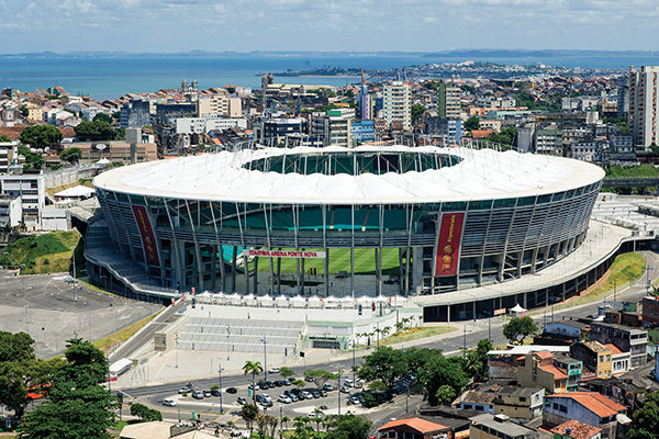 Sân Fonte Nova gắn một thương hiệu bia lên biểu tượng của sân với giá 100 triệu reais, nhưng chẳng ai sử dụng tên gọi mới - Ảnh: primiciadeportiva.com