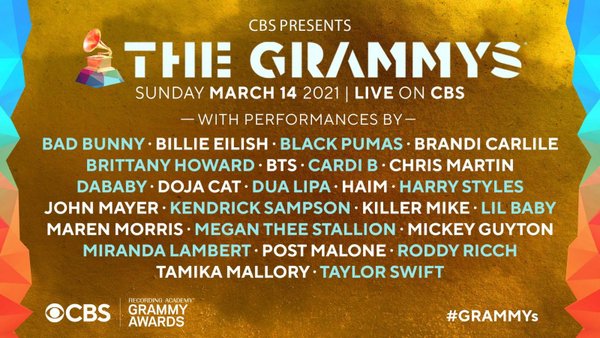 Grammy cũng đã giới thiệu về dàn line-up năm nay như sau: “Chúng tôi vừa tiết lộ toàn bộ dàn line-up cho #GRAMMYs năm 2021! Năm nay, các nghệ sĩ cùng tề tựu lại với nhau, trong khi vẫn giữ khoảng cách xa nhau một cách an toàn, để mang đến sản phẩm âm nhạc của mình đến với cộng đồng và tôn vinh âm nhạc đã gắn kết tất cả chúng ta”.