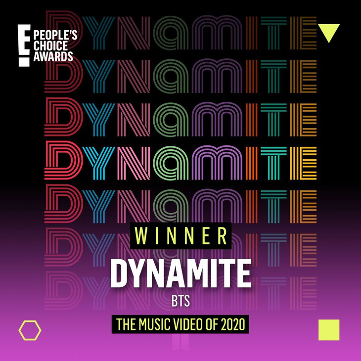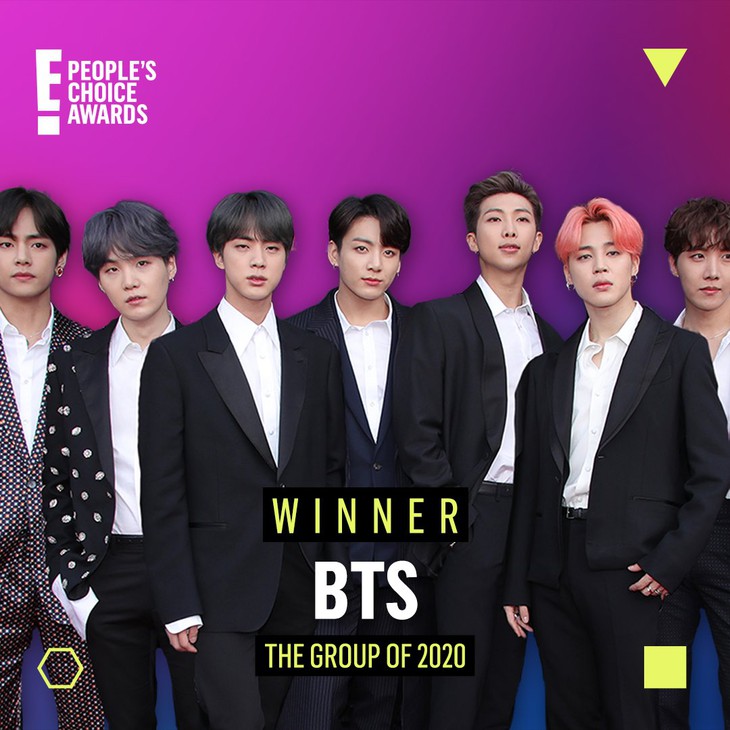 BTS đại thắng tại lễ trao giải People Choice’s Awards 2020 với 4 giải thưởng cho 4 hạng mục, gồm: Nhóm nhạc của năm, Bài hát của năm, Album của năm và MV mới của nămCụ thế, trong hạng mục Nhóm nhạc của năm, BTS đã được đề cử cùng Blackpink, 5 Seconds of Summer, Chloe X Halle, CNCO,… nhưng với sức hút của mình nhóm nhạc nam nhà Big Hit đã vượt qua những đối thủ đáng gờm và giành chiến thắng ở hạng mục này.