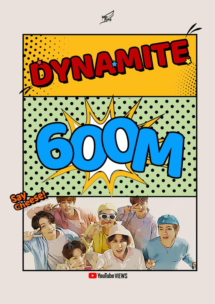 Chưa dừng lại ở đó, vào chiều 16-11, BTS lại tiếp tục đạt thêm thành tích mới khi MV Dynamite chính thức cán mốc 600 triệu lượt xem nhanh nhất toàn Kpop.