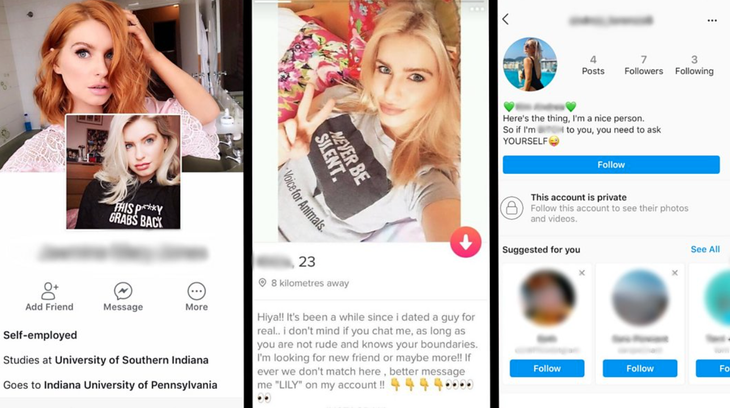 Đó có thể là một cô nàng "Khira" trên Tinder hay "Andrea" trên Instagram hoặc "Jasmine" đến từ Facebook, với hình ảnh tất tần tật thuộc về Jessica.