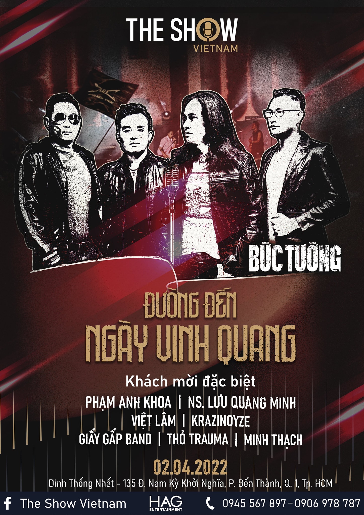 Lần đầu tiên tại Dinh Thống Nhất (TP.HCM) sẽ có một rock show được tổ chức tại đây. Đó là live concert Đường đến ngày vinh quang của ban nhạc rock huyền thoại Bức Tường. Đêm nhạc nằm trong chuỗi chương trình âm nhạc The Show Vietnam.