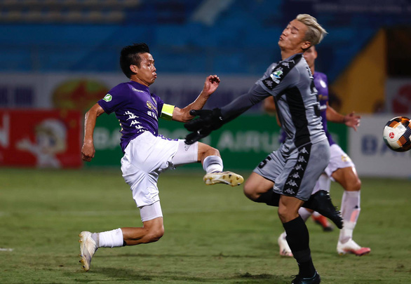 Bùi Tiến Dũng có biểu cảm hài hước khi lao ra cản phá. (Ảnh: Nguyễn Khánh.) Nói chung thì Văn Quyết cũng hay trong tình huống đó. Nhưng sang hiệp 2, kịch bản lại tái hiện, Văn Quyết cũng đối mặt nhưng lại đệm ra ngoài.