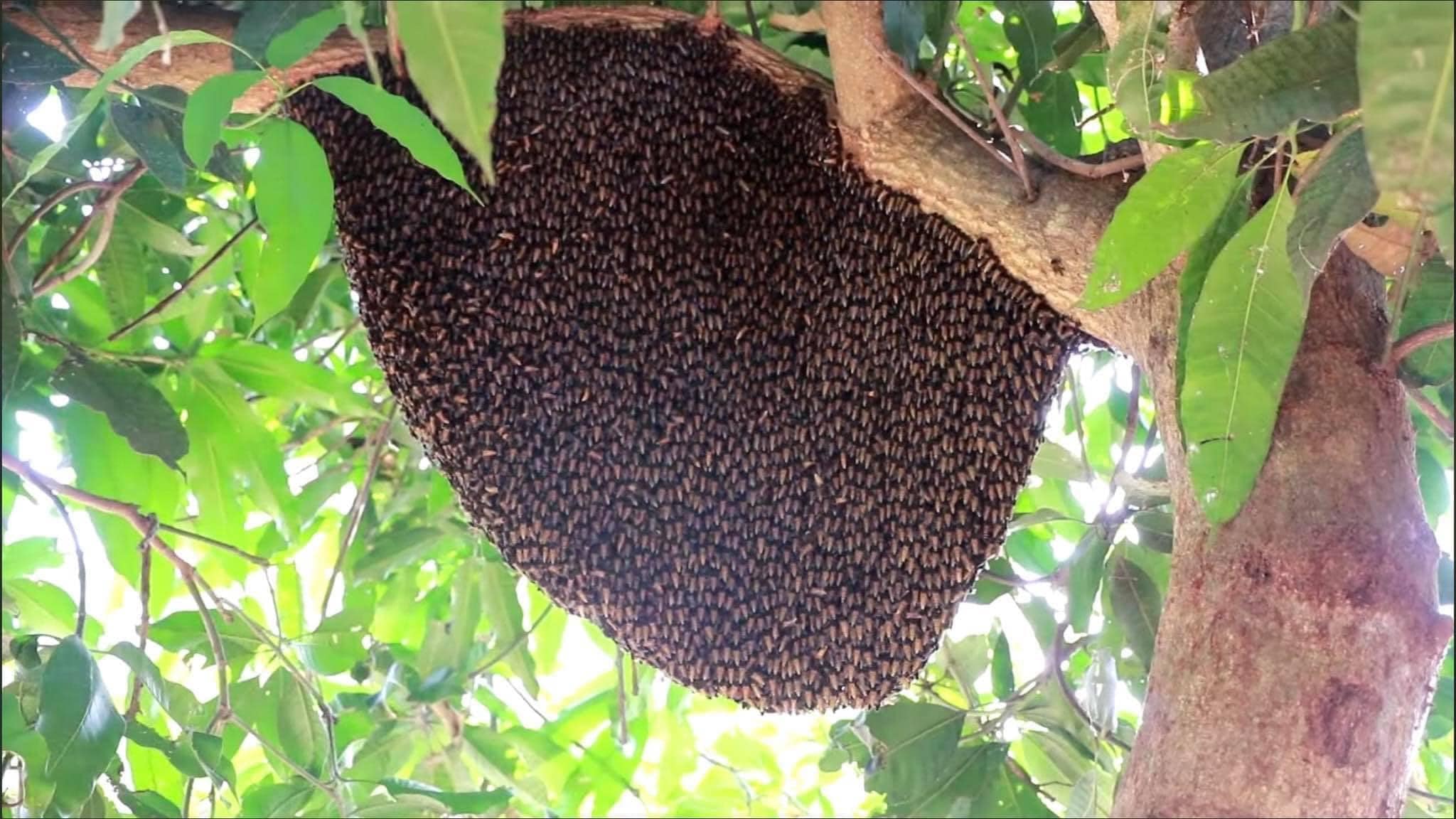 Tổ ong "siêu to khổng lồ", chiếm trọn không gian của một cành cây vững chãi.Và kết quả...