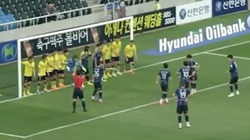"Các bạn dàn hàng ngang bịt kín cầu môn thế kia, sao tụi tôi sút vào", cầu thủ áo đỏ said.