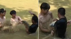 Quá nhiệt tình khi thấy cá há miệng đòi ăn, cô gái đút luôn cả túi cám nhưng chỉ một lát sau con cá đã được gặp luôn các cụ của mình.