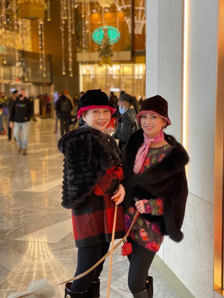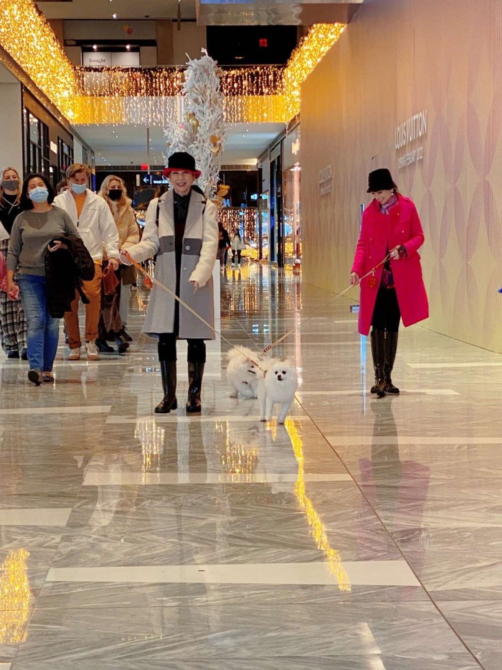 Ca sĩ tỉ phú Hà Phương rủ bạn thân dắt chó đi dạo ở New York