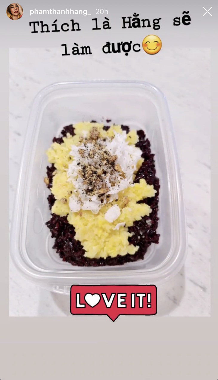 Đây cũng là dịp hiếm hoi siêu mẫu Thanh Hằng vào bếp nấu các món chè, xôi. Không chỉ khoe món ăn, siêu mẫu còn khoe được mẹ khen khi vào bếp.