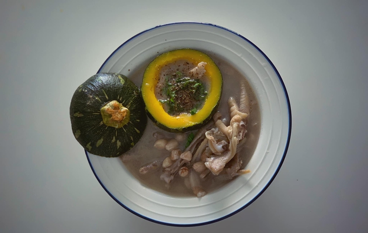 Diễn viên Khôi Trần với món súp nấm đùi gà và chân gà hầm bí đỏ