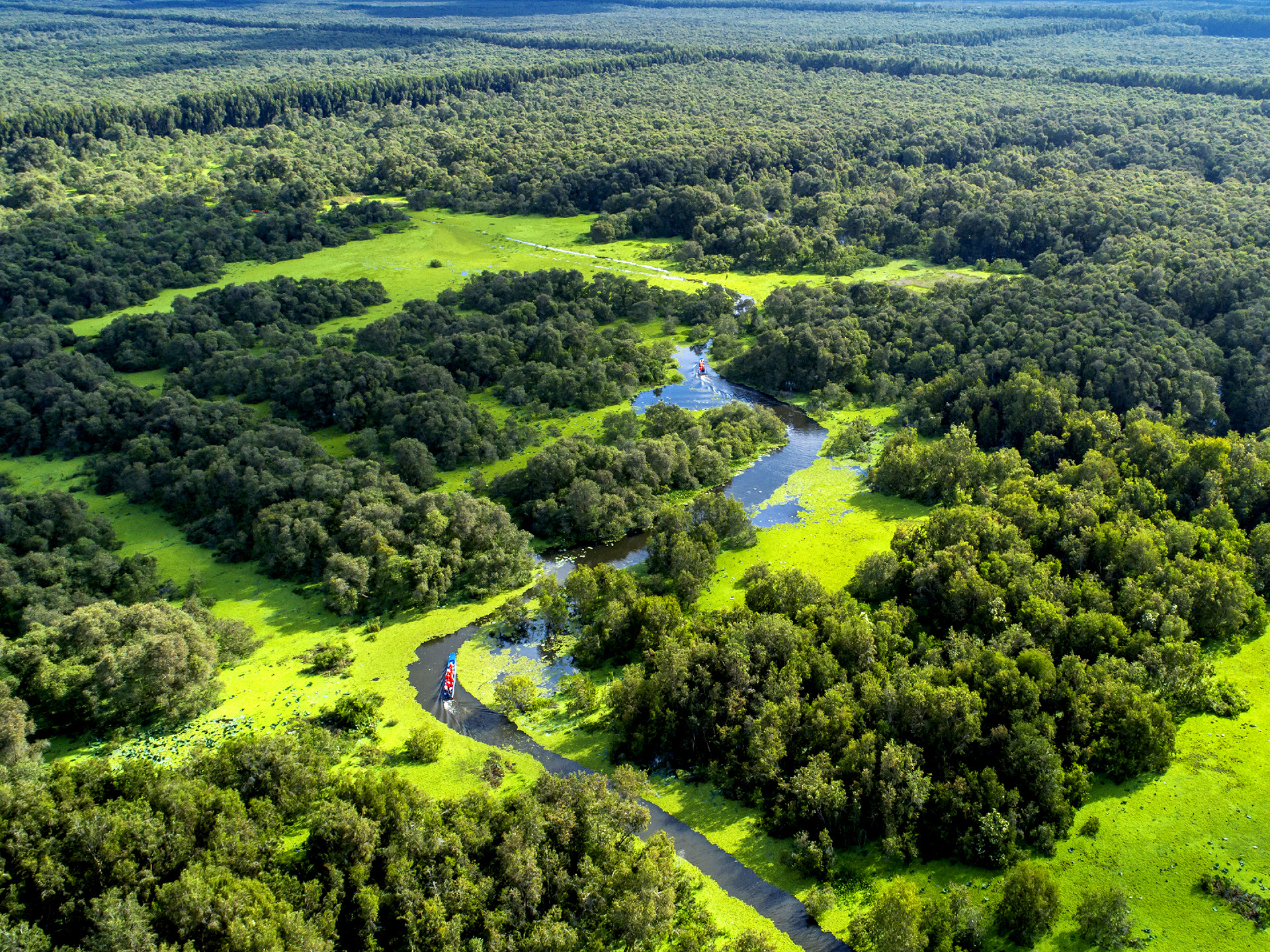 Từ chợ nổi, bạn hãy đi đò dọc hoặc phà qua Khu lưu niệm Chủ tịch Tôn Đức Thắng (xã Mỹ Hòa Hưng).