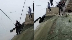 Sau một hồi "đánh vật" với con cá, cần thủ đành bất lực nhìn con vật sổng trong tiếc nuối.