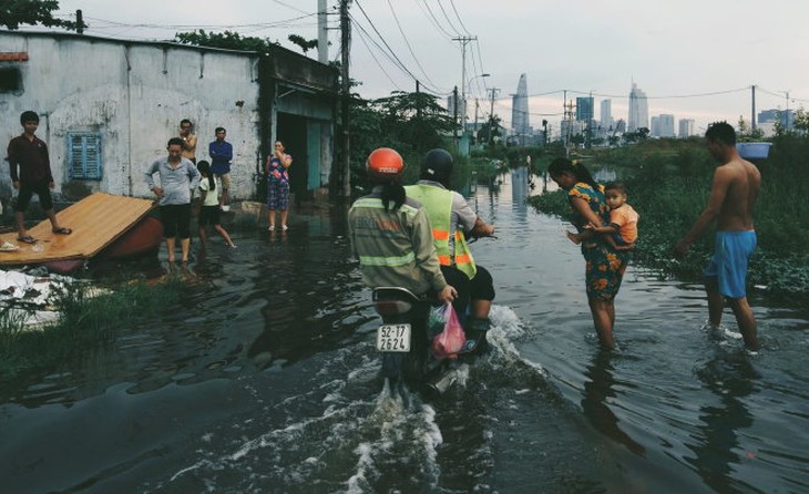 TTCT - Dù ngập nước ảnh hưởng đến việc đi lại, sinh hoạt... và tác động không nhỏ đến tâm lý các cư dân đô thị, nhưng nhiều năm qua chuyện này vẫn chưa được cảnh báo sớm để người dân có những giải pháp phòng, tránh. Người dân khó khăn trong việc ứng phó với ngập vì còn thiếu thông tin cảnh báo về vấn đề này. Ảnh: Cương Trần Đến nay chưa có cơ quan chức năng nào nghiên cứu, thống kê về con số thiệt hại do ngập nước, ngoài số liệu khá chung chung từ kịch bản biến đổi khí hậu: nếu nước biển dâng 1m thì 21% diện tích TP.HCM sẽ bị ngập, ảnh hưởng đời sống đến 7% dân số, thiệt hại kinh tế vô cùng to lớn... Thiệt hại lớn Vì vậy, khảo sát của nhóm tác giả Lê Hữu Lợi, Bùi Việt Hưng, khoa môi trường ĐH Khoa học tự nhiên thuộc ĐH Quốc gia TP.HCM, về tình hình thiệt hại ngập nước do triều cường trên địa bàn TP.HCM phần nào hình dung ra những thiệt hại vì ngập gây ra. Khảo sát trên được thực hiện ở địa bàn quận 7 với nhiều nhóm đối tượng: người dân, hộ buôn bán, cơ sở sản xuất... Do quá trình phát triển, đô thị hóa, quận 7 là một trong những địa phương bị ảnh hưởng nặng nề bởi tình trạng ngập lụt vì triều cường như các tuyến đường: Huỳnh Tấn Phát, Nguyễn Thị Thập, Trần Xuân Soạn... Trong năm, triều cường lớn chỉ xuất hiện vài tháng, thường bắt đầu khoảng tháng 9 đến tháng 1, tháng 2 năm sau. Mỗi tháng đỉnh triều thường xuất hiện vào giữa và cuối tháng nhưng đã gây thiệt hại cho các hộ gia đình 12,9 triệu đồng/năm, hộ buôn bán là 13,4 triệu đồng/năm. Tình trạng ngập nước gây kẹt xe, người dân phải nghỉ, trễ giờ làm việcẢnh: Cương Trần Theo nhóm tác giả trên, những thiệt hại này bao gồm chi phí sửa chữa tường, nâng nền nhà, vật dụng trong gia đình, khám chữa bệnh... Đối với các cơ sở sản xuất, thiệt hại do ngập lên hàng chục triệu đồng do bị hư hại nguyên vật liệu, thiết bị sản xuất... Chưa kể tình trạng ngập nước gây kẹt xe, người dân phải nghỉ, trễ giờ làm việc, được tạm tính theo mức độ ngập từ 10-100cm, tương ứng thiệt hại 10-90 tỉ đồng/năm. Qua khảo sát, nhóm tác giả kết luận: tình hình thiệt hại do ngập nước chiếm 0,38% tổng tài sản đối với hộ gia đình và 0,36% đối với tài sản hộ buôn bán. Thiệt hại gián tiếp liên quan đến việc gián đoạn hoạt động, khắc phục sau khi ngập... chiếm tới 4,3% tổng thu nhập đối với hộ buôn bán kinh doanh. Tuy nhiên, kết quả này vẫn chưa thể đánh giá hết được các thiệt hại gián tiếp khác về tinh thần của người dân vì ngập nước, kẹt xe, ảnh hưởng đến công ăn việc làm, năng suất lao động... và ước lớn hơn gấp nhiều lần mức độ thiệt hại từ kết quả khảo sát đã được công bố trên. Chưa thể đánh giá hết được các thiệt hại gián tiếp khác của người dân vì ngập nướcẢnh: Cương Trần Giải pháp: phòng trước khi chống Để giảm thiệt hại do ngập nước, các đối tượng được khảo sát đều đề xuất chính quyền cần hỗ trợ kinh phí, ví dụ như tạo quỹ cho vay trả chậm với lãi suất thấp để người dân thực hiện các giải pháp chống ngập tại chỗ, góp phần ổn định chỗ ở, sản xuất buôn bán, kinh doanh. Đồng thời thành lập đội ứng cứu nhanh về ngập nước chuyên trách cho từng địa bàn và mỗi nhà được cung cấp danh sách những đội này nhằm kịp thời hỗ trợ, xử lý tình hình ngập, hướng dẫn giao thông, ứng cứu tình huống khẩn cấp. Hiện tại để đối phó tình trạng ngập nước, các hộ dân ở vùng ngập phải nâng nền nhà hoặc dùng bao cát, ván chặn trước cửa, kê dọn đồ đạc... Người dân ở các vùng ngập cũng cho rằng cơ quan chức năng cần thông tin cho họ đầy đủ về thời điểm ngập, thời gian ngập bao lâu, mức độ ngập... Các thông tin này cần dự báo sớm và cập nhật thường xuyên nếu tình hình có thay đổi. Ngoài các phương tiện truyền thông, việc thông tin có thể chủ động thực hiện qua tin nhắn điện thoại, mạng xã hội... thay vì người dân phải chủ động tìm hiểu như hiện nay. Ông Nguyễn Hoàng Anh Dũng, phó giám đốc Trung tâm Điều hành chương trình chống ngập nước TP.HCM, cho hay lãnh đạo UBND TP.HCM rất quan tâm đến việc thông tin, cảnh báo ngập cho người dân và trung tâm đang từng bước triển khai thực hiện. Theo đó, thông qua website: https//chongngap.hochiminhcity.gov.vn/baongap, đơn vị này cung cấp tình hình thực tế ngập nước trên địa bàn thành phố mỗi khi có mưa hoặc triều cường. Với việc tích hợp 37 camera tại một số tuyến đường thường bị ngập: Trần Xuân Soạn (Q.7), Hồ Học Lãm (Q.Bình Tân), Nguyễn Hữu Cảnh (Q.Bình Thạnh), Quốc Hương (Q.2)..., người dân có thể truy cập vào xem diễn biến thực tế tình hình ngập nước. Ngoài ra, lực lượng tuần tra của trung tâm sẽ tuần tra khi có ngập nước do mưa, triều cường để cập nhật diễn biến lên web hoặc người d