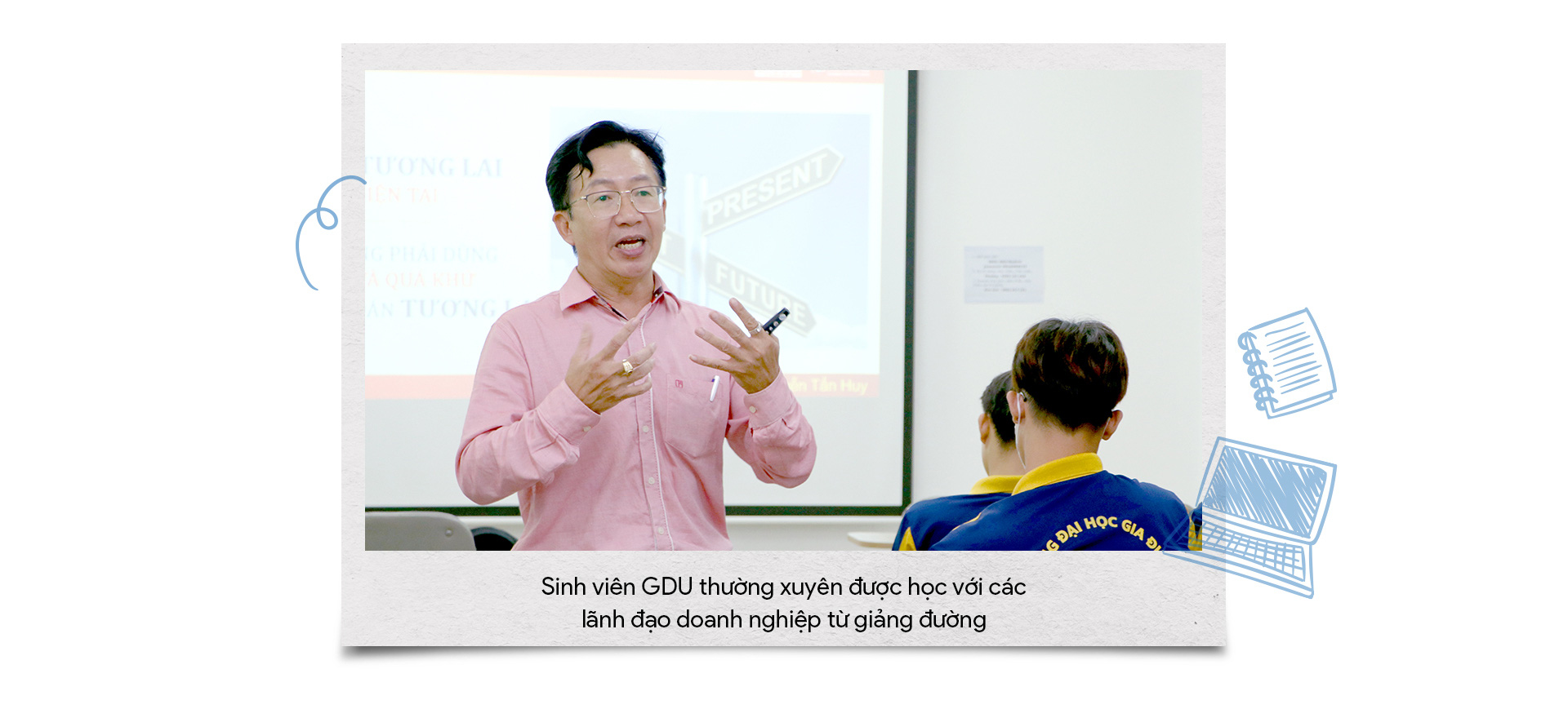 Với sinh viên GDU, việc được đi kiến tập, thực tập tại công ty, tập đoàn, học với lãnh đạo doanh nghiệp từ giảng đường, học với chuyên gia nước ngoài ngay từ năm nhất… không quá xa lạ. Các bạn thường xuyên được học từ môi trường thực tế, tiếp thu kiến thức và kinh nghiệm của người trong nghề tại giảng đường.