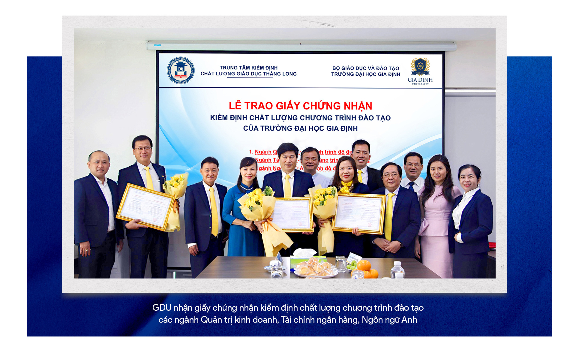 Trước đó, tháng 2-2023, GDU cũng đón nhận giấy chứng nhận kiểm định chất lượng chương trình đào tạo đối với 3 ngành: quản trị kinh doanh, tài chính ngân hàng và ngôn ngữ Anh.