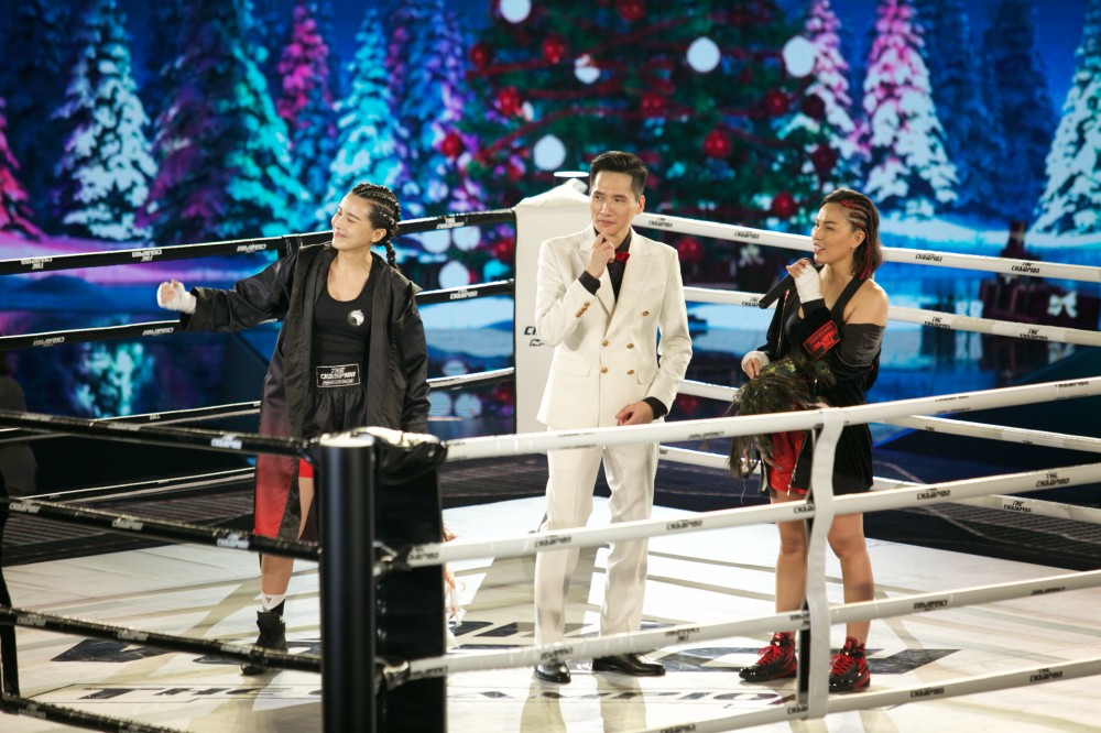 Cao Thái Hà (trái) bắt cặp đấu với Quỳnh Thư (phải) ở sân chơi boxing The Champion.Khách mời Duy Khánh bày tỏ: "Đây là trận đấu có sự quyết tâm giữa 2 võ sĩ mà còn có tính giải trí cực kỳ cao". Ông Mai Thanh Ba nhận xét: "Rất đáng khen cho tinh thần thi đấu của 2 bạn nữ, rất nhiệt tình và mãnh liệt. Các bạn cố gắng kiềm chế cảm xúc lại một chút thôi!".