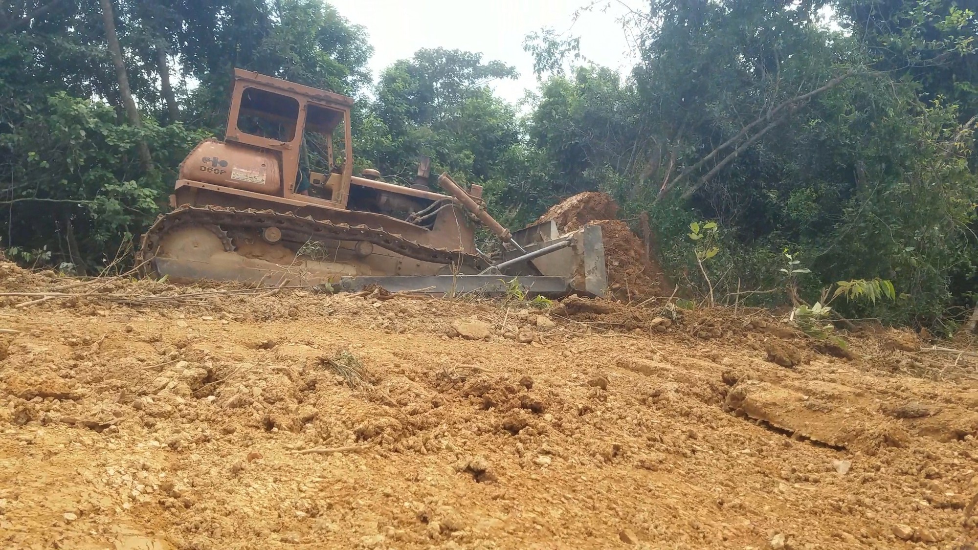 Sáng 8-10, chiếc máy ủi tiếp tục leo lên đỉnh đồi kế tiếp, cày xới từng đường dọc từ đỉnh xuống tận chân đồi rồi sau đó ủi rộng ra theo chiều ngang.