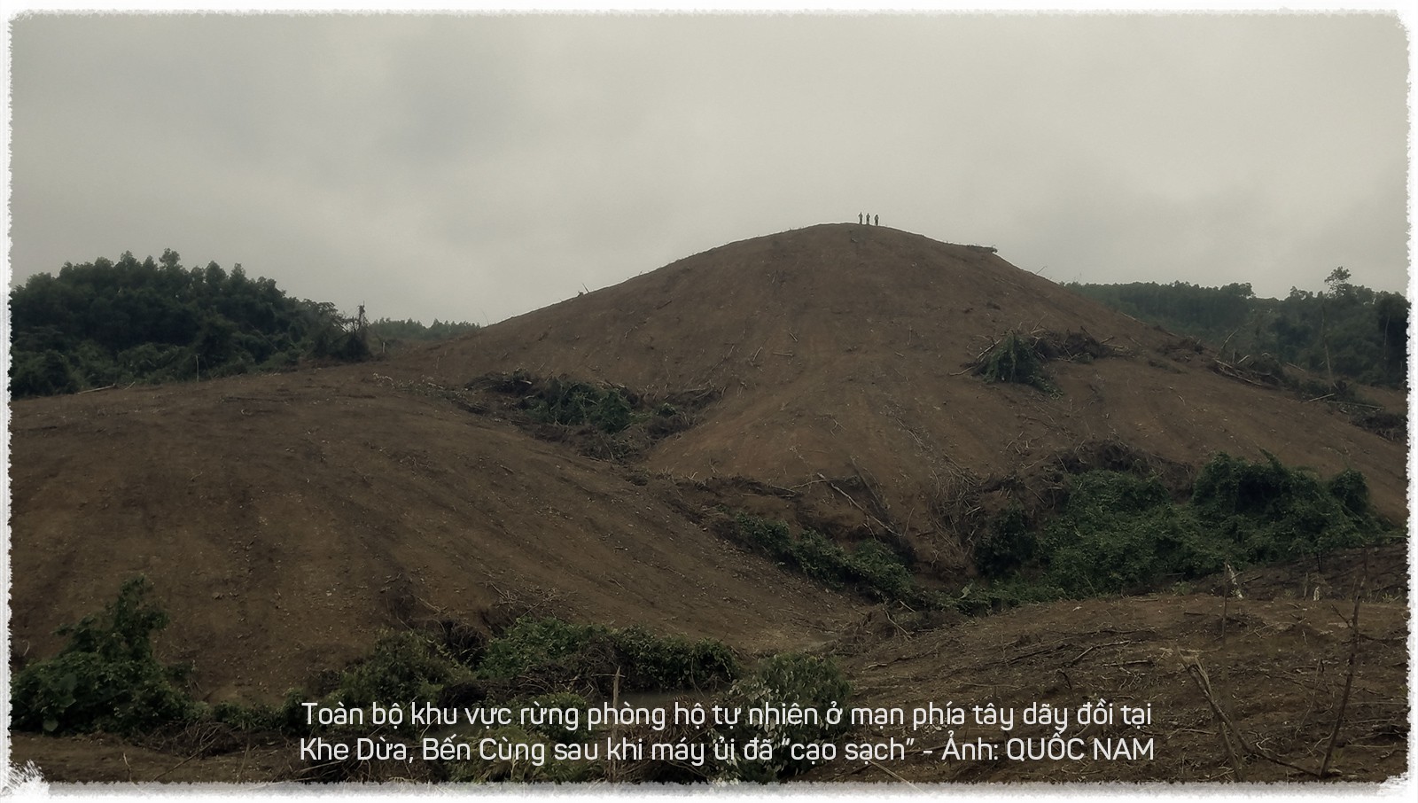 Về khu vực rừng phòng hộ khoảng ba chục hecta bên cạnh, trao đổi với chúng tôi, ông Nguyễn Văn Phúc - giám đốc xí nghiệp 2, thuộc công ty lâm nghiệp Bến Hải xác nhận chính ông là người đã đưa máy vô ủi khu vực rừng này.